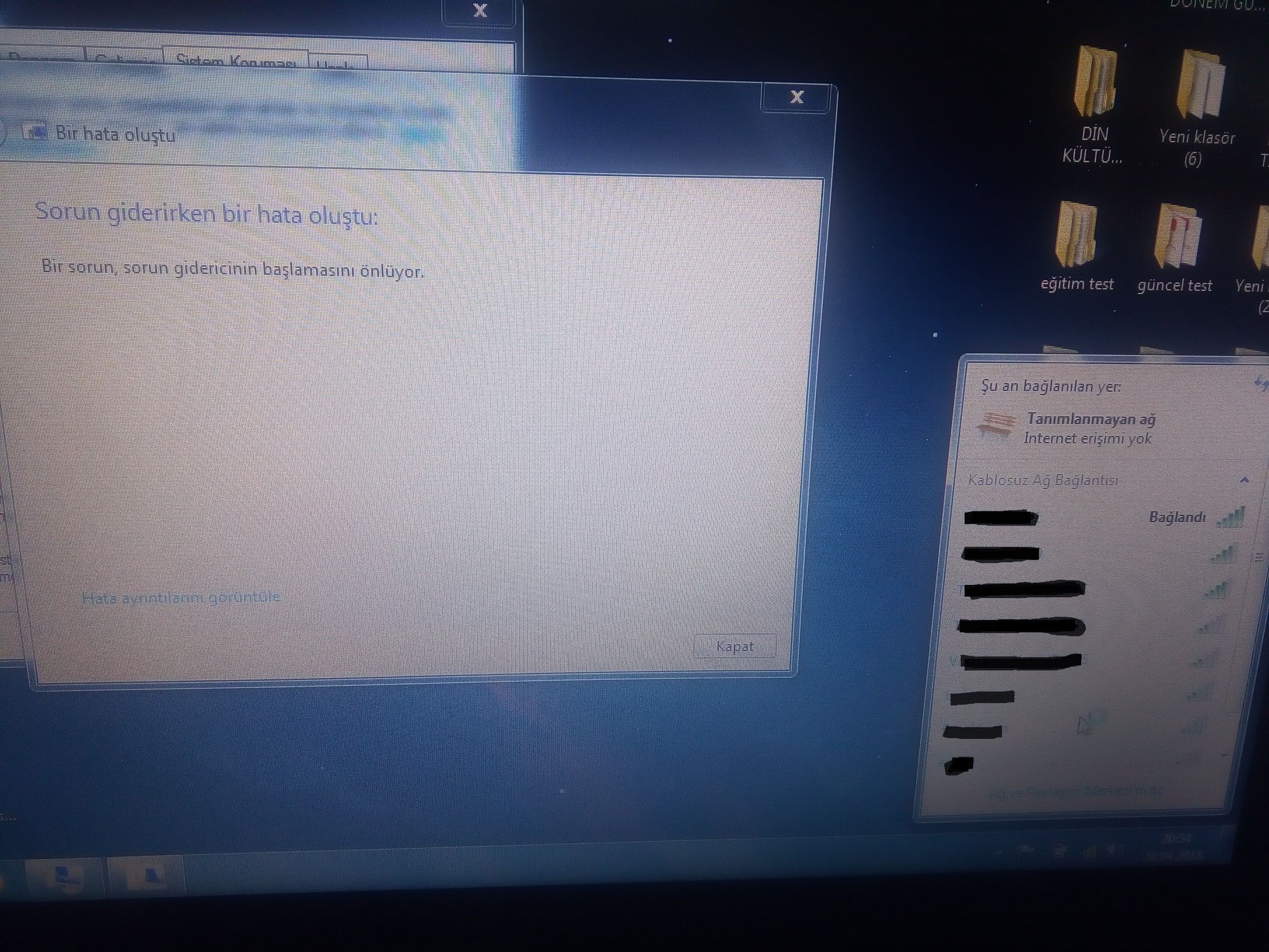 Benim sıkıntım 3 hafta önce felan başladı aşağıya da fotoğrafını ekleyeceğim.Şöyle başladı normal bilgisayarda oyunu oynadım kapattım yattım ve kalktığımda internete bağlanmıyordu bağlanıyor ama sarı yıldız ve sınırlı erişim diyordu neyse uğraşa uğraşa geri yükleme yaparak çözmeyi buldum.Fakat bugün bu hata illallah getirdi dünden beri düzeltemiyorum geri yükleme noktası yakın tarihte olduğu için kablolu olarak interneti bağlayabiliyorum ama wifi da ağ tanımlanamıyor yada sınırlı erişim diyor ne yapmalıyım ? Sorun gidericiyi açtığımda bir şey çalışmasını engelliyor diyor hata konumu windowsun networking dosyası.Şu anda hala alıyorum hatayı.